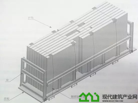 立式运输方案:在低盘平板车上按照专用运输架,墙板对你称靠放或者插放在运输架上。对于内、外墙板和PCF板等竖向构件多采用立式运输方案。