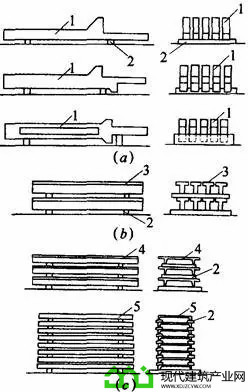 普通柱、梁、板的堆放方法,分别如下图(a)、(b)、(c)所示。